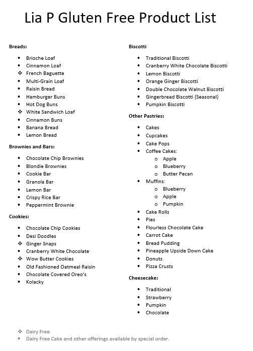 Copyright 2019. Page: Product Flyer. All Rights Reserved Lia P Gluten Free